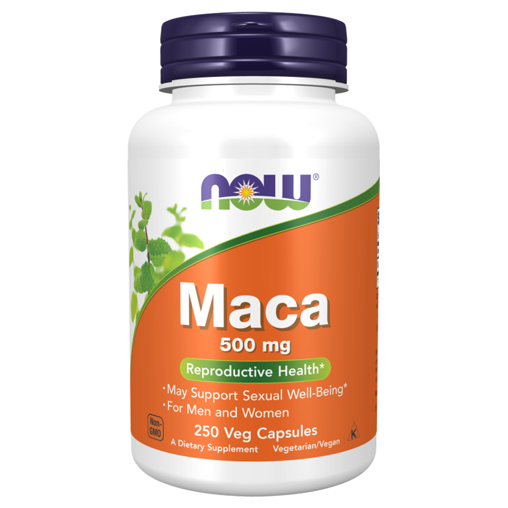 Now Maca, 250 Vegetable Capsules, 500 mg, is a dietary supplement made from 100% pure Maca root powder (Lepidium meyenii), a root vegetable native to the high Andes of Peru. This product is free from preservatives and additives, ensuring a natural supplement. Each capsule contains 500 mg of Maca root powder, which is rich in vitamins, minerals, and antioxidants.