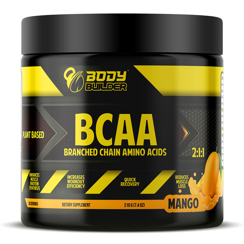 بودي بيلدر BCAA، مانجو، 30 حصة، هو مكمل غذائي مصمم لدعم نمو العضلات والتعافي. يحتوي على الأحماض الأمينية الأساسية المتفرعة السلسلة (BCAAs)، وهي ضرورية لتعزيز العمليات الأيضية التي تشكل جزيئات البروتين الطويلة، الضرورية لتطوير العضلات. هذا المنتج مفيد بشكل خاص لأولئك الذين يشاركون في تدريب المقاومة، حيث يساعد في بناء وإصلاح العضلات، مما يؤدي إلى تدريبات أكثر فعالية وتقليل الألم بعد التمرين.