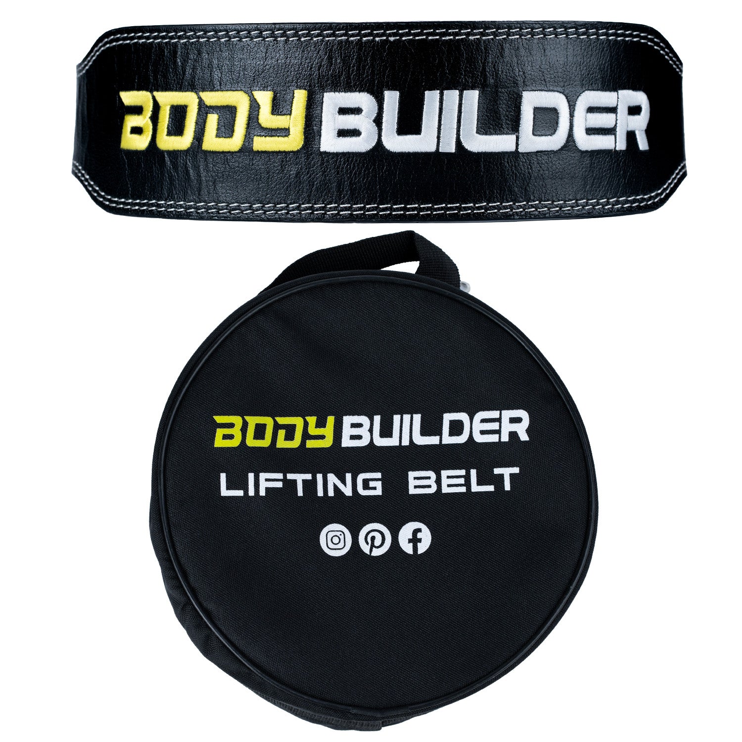 Body Builder Leather Belt With Back Support (L) With Bag - Body Builder