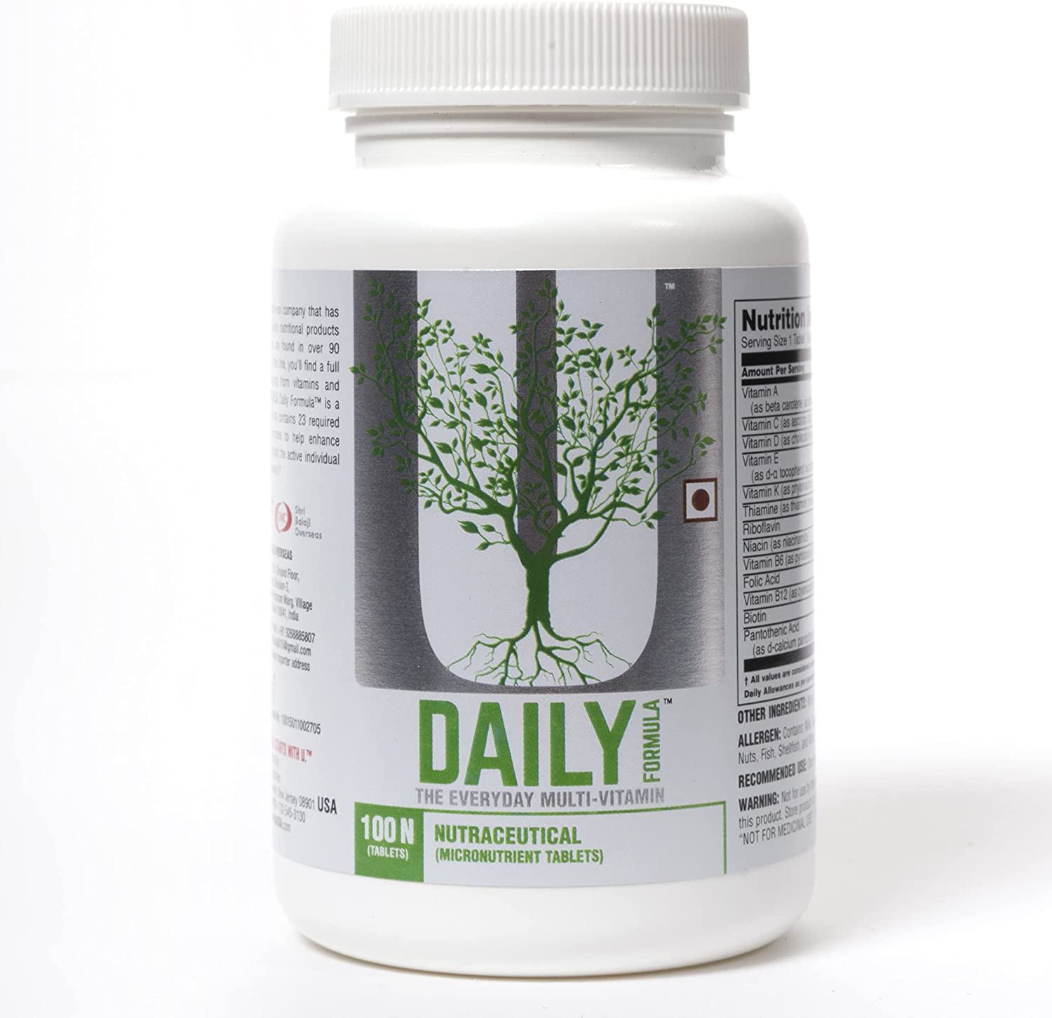 تم تصميم Universal Nutrition Daily Formula Multivitamin لدعم الصحة المثالية من خلال توفير مجموعة شاملة من العناصر الغذائية. تحتوي كل زجاجة على 100 قرص، مما يوفر طريقة مريحة لضمان تناول الفيتامينات والمعادن الأساسية يوميًا.