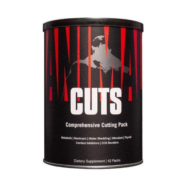 Universal Nutrition Animal Cuts، 42 عبوة، هو مكمل غذائي شامل مصمم للرياضيين في مرحلة القطع. يحتوي على مزيج من المكونات التي تستهدف جوانب مختلفة من فقدان الدهون وتعريف العضلات. تم تصميم المنتج لتعزيز حرق الدهون وتحفيز الغدة الدرقية ودعم طرد السوائل الزائدة من الجسم. وهذا يساعد في تقليل احتباس الماء، والذي يمكن أن يحجب تعريف العضلات.