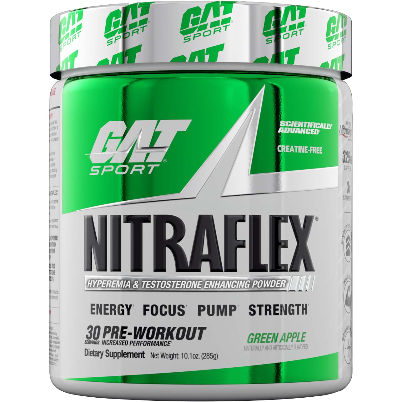 GAT Sport Nitraflex Testosterone Boosting Powder بنكهة التفاح الأخضر عبارة عن تركيبة تدريب مسبقة عالية الكثافة تم اختبارها سريريًا ومصممة لتعزيز الطاقة واليقظة والقوة والقدرة على التحمل والمضخات والتستوستيرون الحر أثناء التدريبات. يوفر مكمل ما قبل التمرين هذا نتائج تدريب سريعة ومتفجرة، ويدعم الطاقة والقدرة على التحمل وإنتاج أكسيد النيتريك (NO) ومستويات هرمون التستوستيرون.