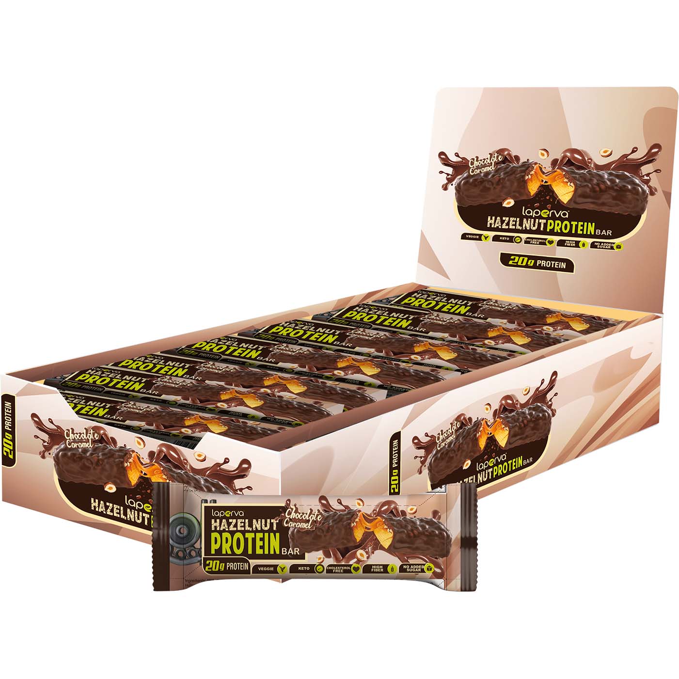 علبة بها 18 قطعة، بار بروتين لابيرفا بالبندق، شوكولاتة بالكراميل