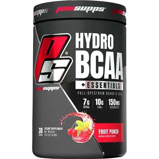 Pro Supps Hydro BCAA Essentials، Fruit Punch، 30 حصة، هو مكمل غذائي مصمم لدعم تعافي العضلات وتنميتها وترطيبها. تحتوي كل حصة على 10 جرام من الأحماض الأمينية الأساسية (EAAs)، بما في ذلك 7 جرام من الأحماض الأمينية المتفرعة السلسلة (BCAAs) بنسبة 2: 1: 1 من الليوسين والليزوليوسين والفالين. هذه النسبة مثالية لتحفيز تخليق البروتين، ومنع انهيار العضلات، والحفاظ على مخازن الجليكوجين.