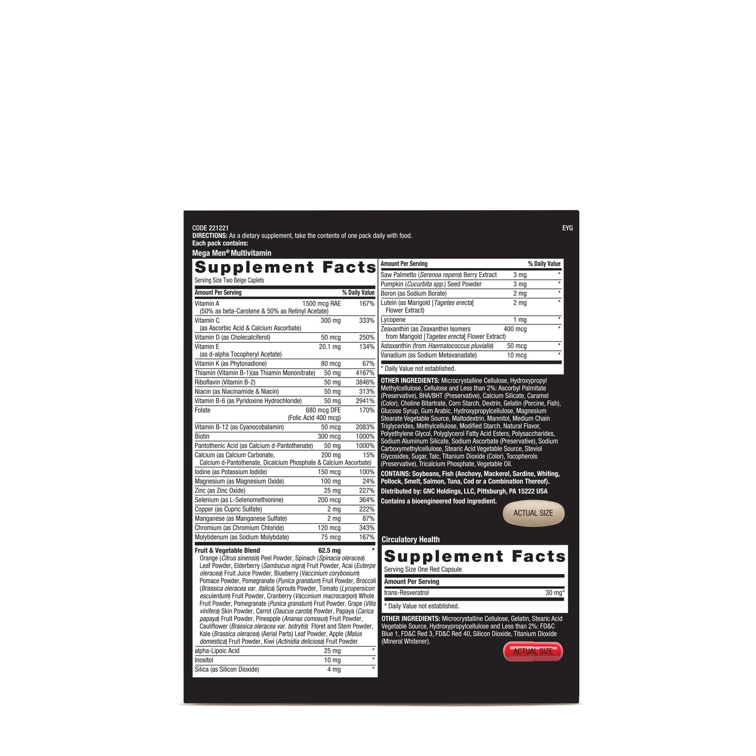 لقد أضفنا صورة إلى القائمة الدائرية تحتوي على المكونات المدرجة لـ GNC ميجا مين التستوستيرون فيتاباك.