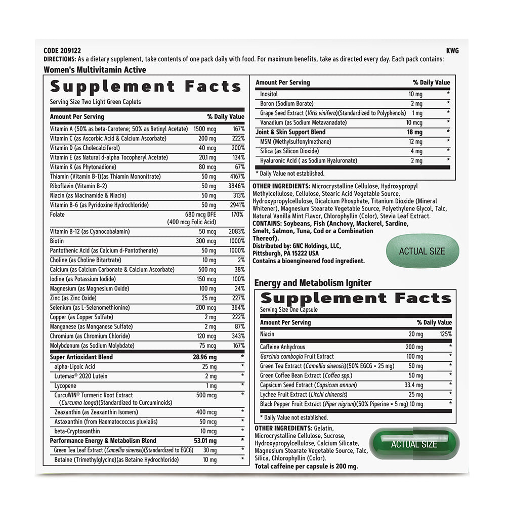 ما هي مكونات جي إن سي جي إن سي WOMEN'S VITAPAK PROGRAM® ENERGY AND METABOLISM [(30 PACK)]؟
