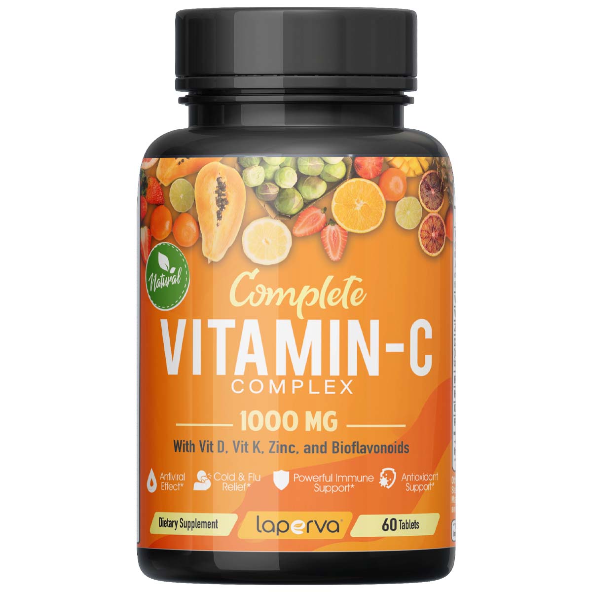 Laperva Complete Vitamin C Complex هو مكمل غذائي يوفر 1000 ملجم من فيتامين C لكل قرص. تحتوي كل زجاجة على 60 حبة. يشتمل المنتج على فيتامين C وفيتامين D وفيتامين K والزنك المستخرج طبيعيًا، بالإضافة إلى العناصر الغذائية الأساسية الأخرى. تعمل هذه المكونات معًا لتقوية وتعزيز الخلايا المناعية. تشتمل التركيبة أيضًا على وردة المسك، والروتين، والهسبيريدين، والبيوفلافونويدات الحمضية، والبوليفينول. تساعد هذه المكونات على الحماية من أضرار الجذور الحرة، وتعزيز صحة البشرة، ودعم نظام المناعة الصحي.