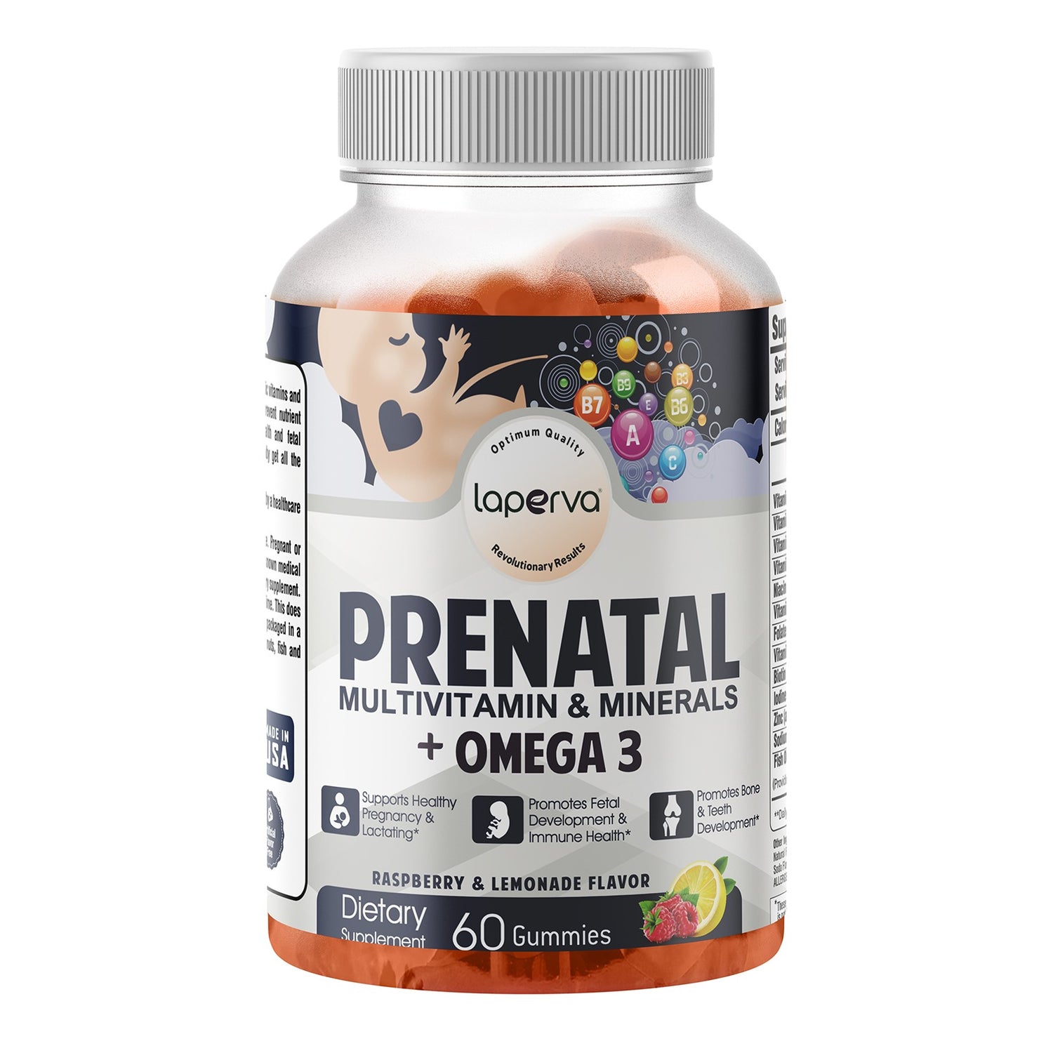 Prenatal Multivitamin & Minerals + Omega 3, Raspberry Lemonade, 60 Gummies - Laperva - Laperva