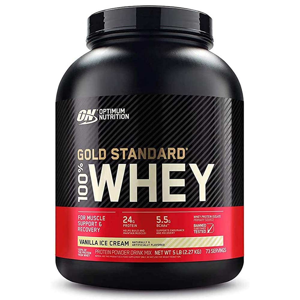 جولد ستاندرد 100% بروتين مصل الحليب، آيس كريم الفانيليا، 5 رطل - التغذية المثالية