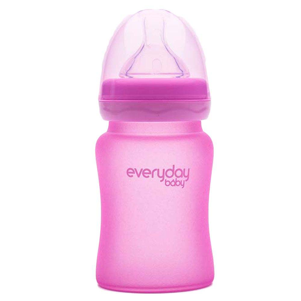 Everyday Baby Glass Baby Bottle, Heat Sensing, Pink, 150 ML