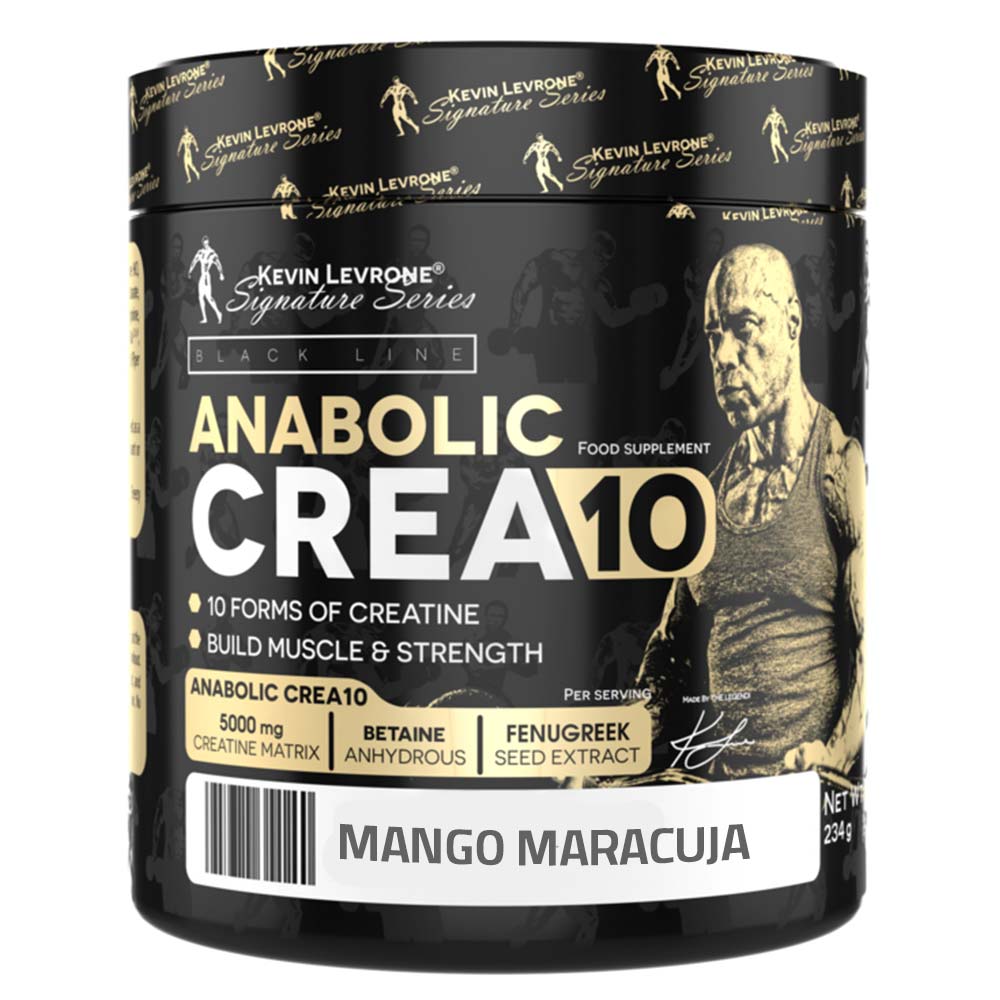 Kevin Levrone Anabolic Crea10, Mango Maracuja, 234 g, is a specialized supplement designed to support muscle building and enhance strength. This product contains a blend of 10 different forms of creatine, each selected for its effectiveness in promoting muscle growth and improving athletic performance. The high dose of creatine in this formula helps increase strength, making it ideal for those looking to build lean muscle mass.