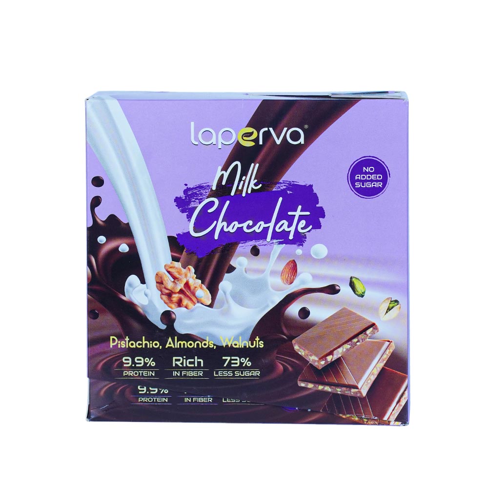 Laperva Milk Chocolate Pistachio, Almonds and Walnuts No Added Sugar Chocolate Bar, Box of 12 Bars - Laperva
