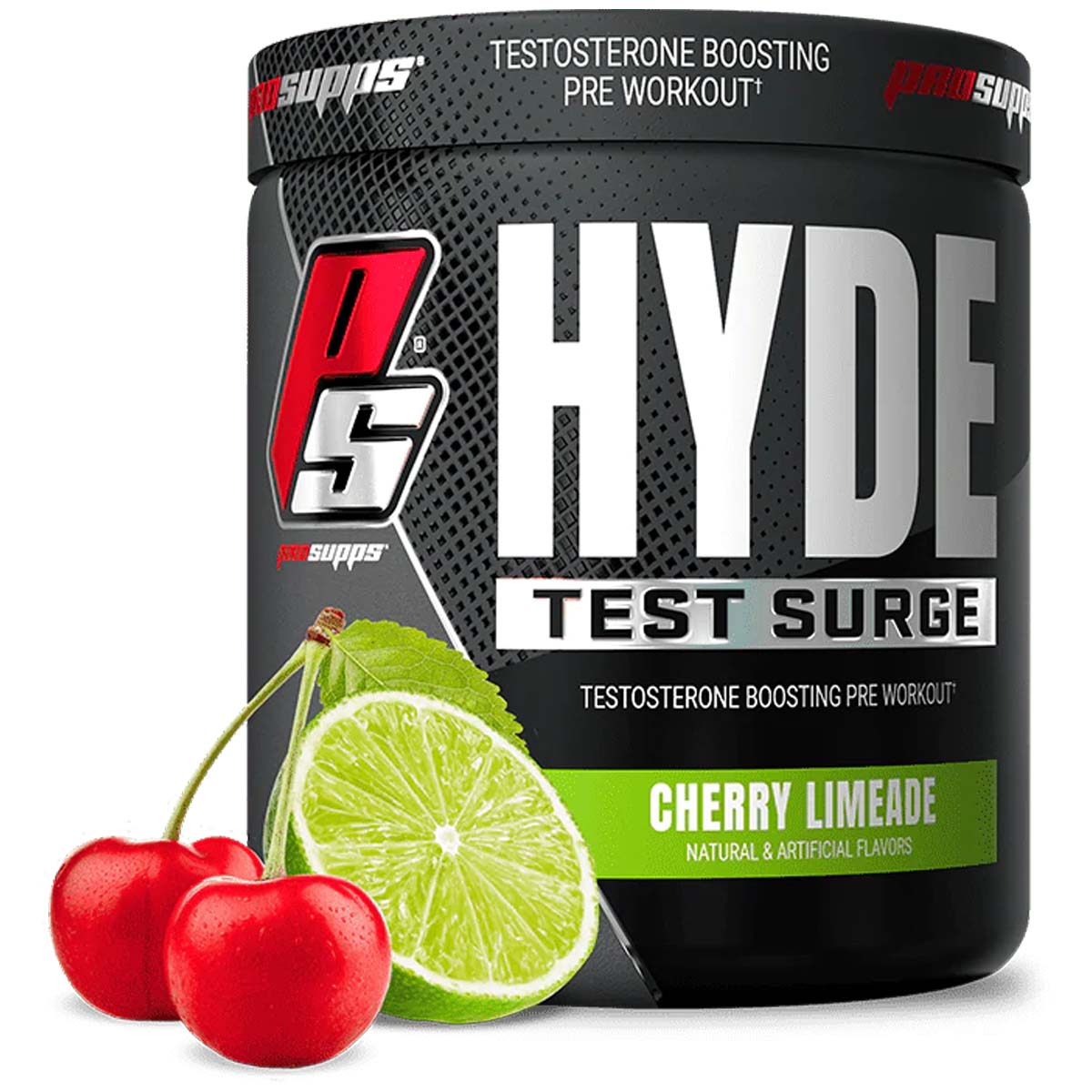 Pro Supps HYDE Test Surge, Cherry Limeade, 30 servings, is a preworkout supplement designed to enhance performance. It combines key testosteronepromoting ingredients with a refined version of the existing HYDE formula. This product aims to deliver maximum power, strength, energy, stamina, and focus while aiding recovery and reducing cortisol's negative effects.