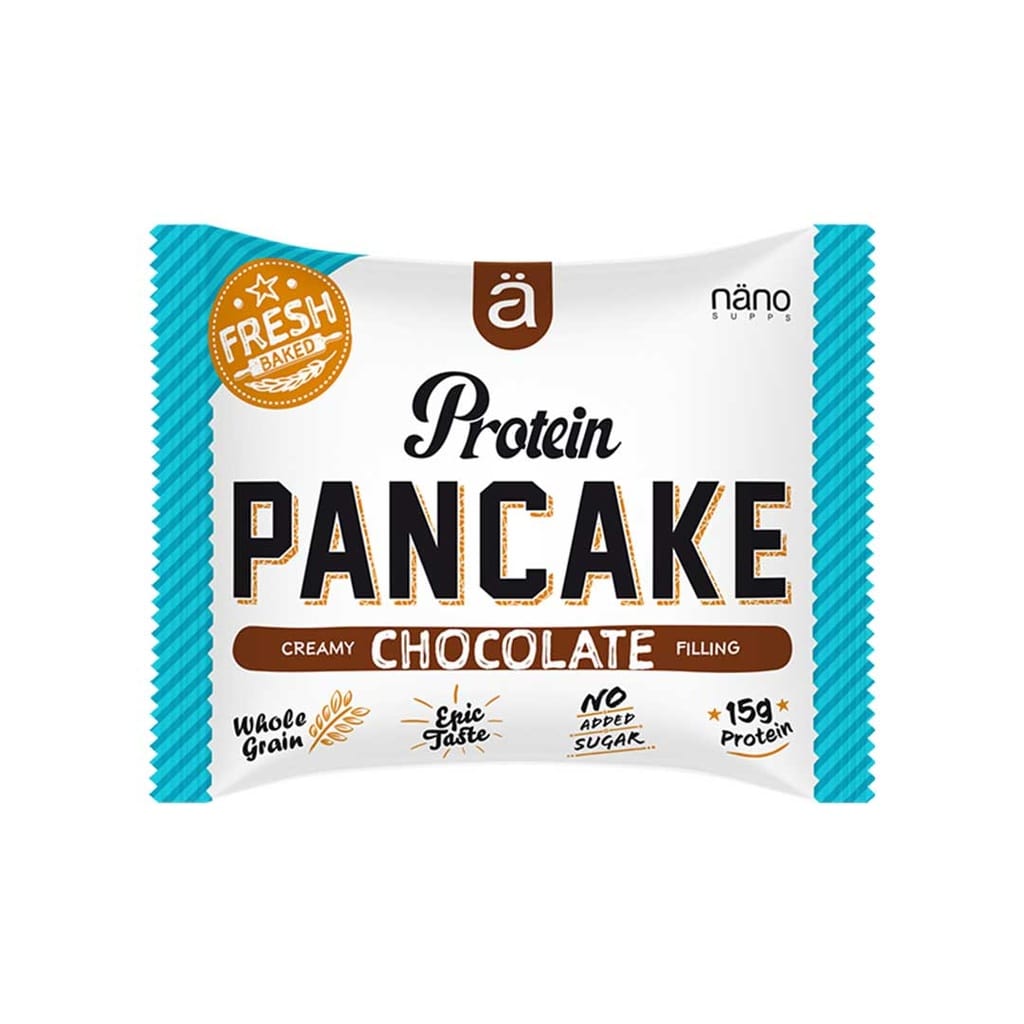 NanoSupps Protein Pancake, Chocolate, 45 Gm, is a fitnessoriented snack designed for those who enjoy sweet treats without compromising their nutritional goals. Each pancake is made with UltraWhey Protein (VOLAC Volactiv), wholemeal flour, and farmer's eggs, ensuring a highquality protein source. The filling consists of a whipped protein cream, providing a delicious and satisfying taste.