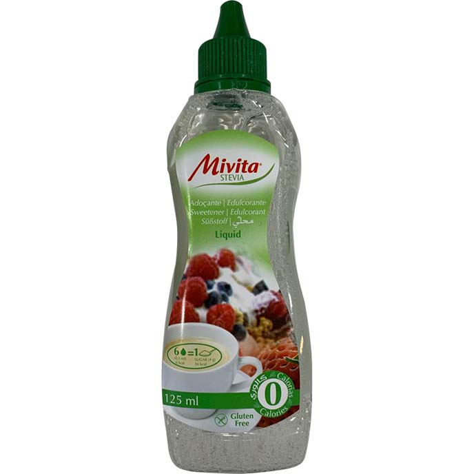 Mivita Stevia Liquid, 150 ML, is a zerocalorie sweetener derived from the stevia plant, known for its intensely sweet taste. This product serves as a healthier alternative to sugar, suitable for daily use. It is glutenfree and recommended for individuals following weight loss, Keto, and diabetic diets.