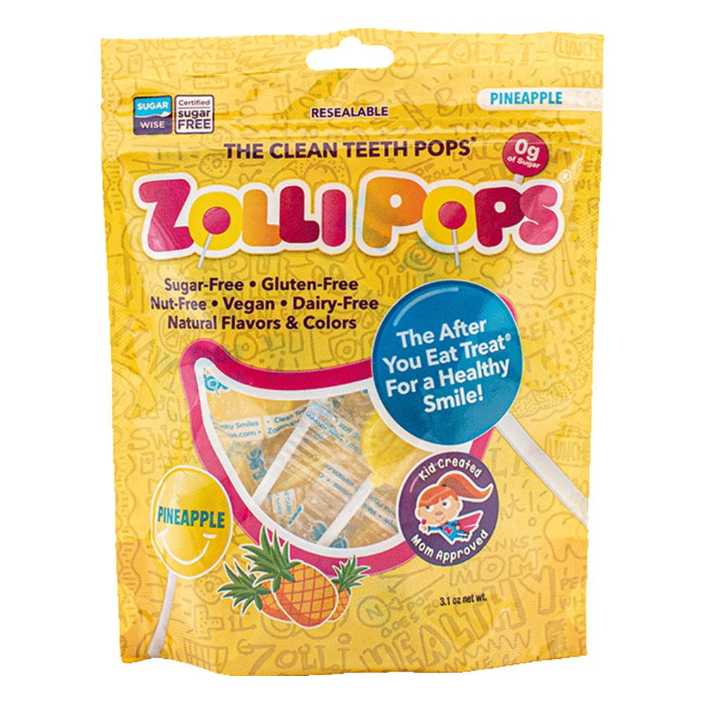 Zolli Candy Pops, Pineapple, 87 Gm, offer a tasty and toothfriendly treat. These pops come in a pineapple flavor and are designed to support oral health. They contain zero sugar and use xylitol to help neutralize the pH level in your mouth.