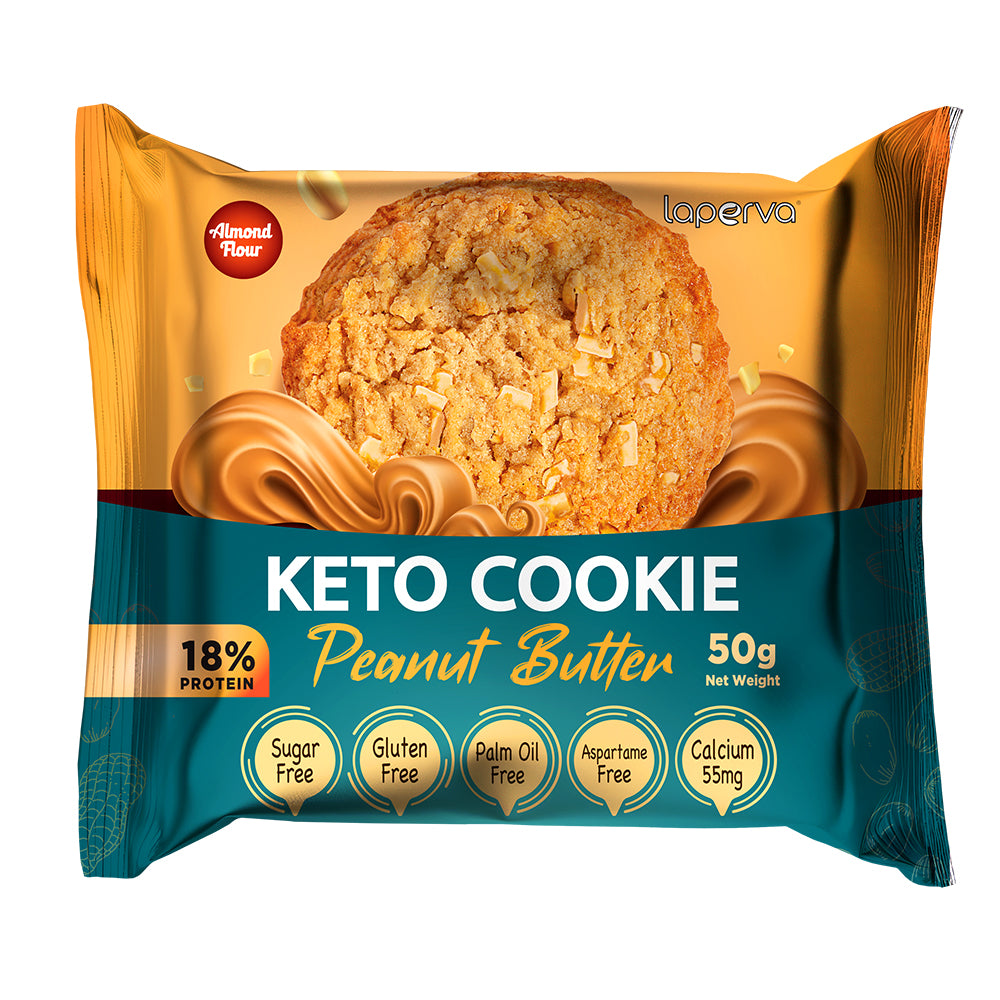 Laperva Keto Cookie, Peanut Butter, is a singleserving snack designed for those following a ketogenic diet. Made with almond flour, it offers a unique texture and a rich peanut butter flavor. Each cookie contains 18% protein, making it a nutritious option for protein intake.