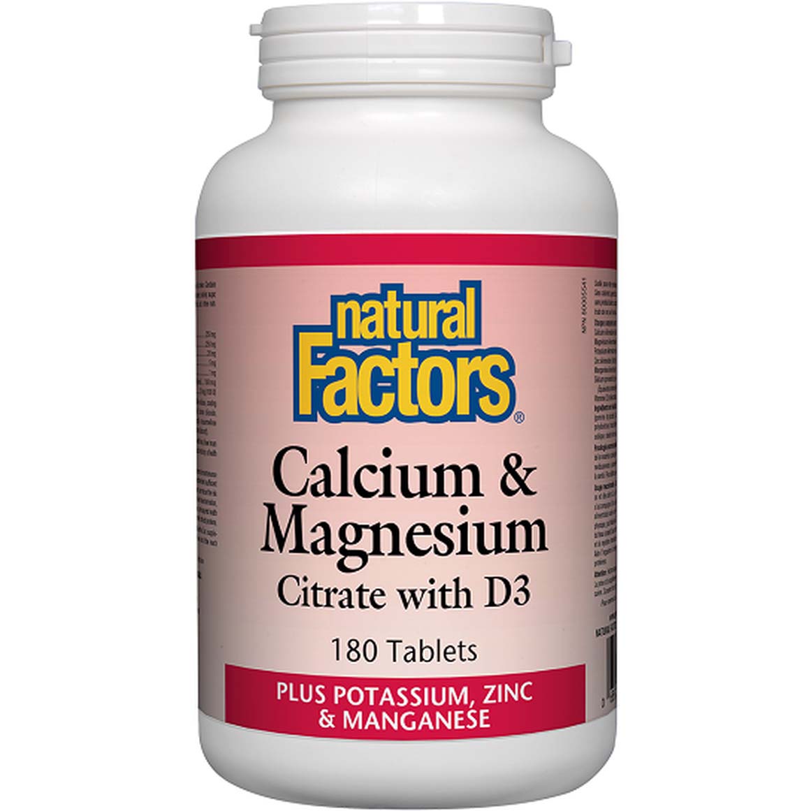 Calcium & Magnesium Citrate with D3 Plus Potassium, Zinc & Manganese, 180 Tablets - Natural Factors