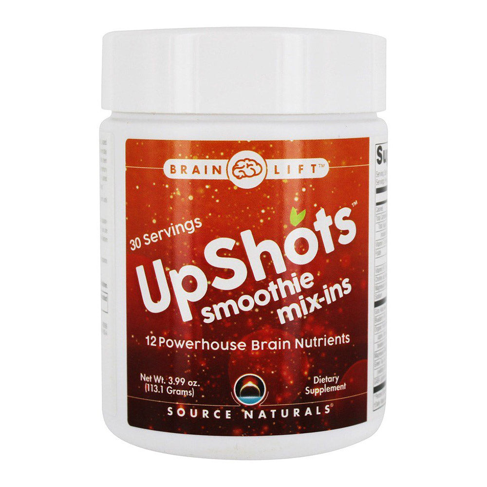 Source Naturals Upshots Smoothie MixIns, 113.1 g, is designed to enhance the nutritional value of your smoothies. This product features twelve key brainsupporting ingredients. One small scoop of Brain Lift transforms your regular smoothie into a brainboosting beverage. Key ingredients include Gotu kola, known for supporting mental clarity, choline for healthy cognition, and green tea for working memory and alertness. Brain Lift integrates seamlessly with the flavor of your favorite smoothie, making it a convenient addition to your morning routine. This product is suitable for vegetarians.