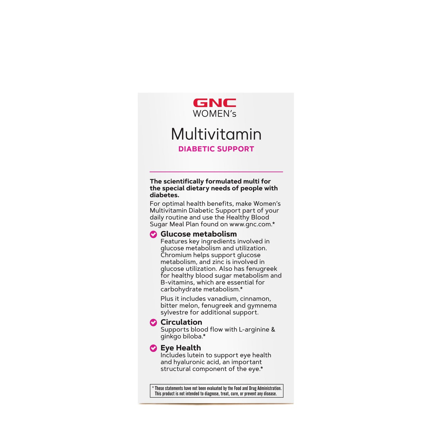 Choose GNC Women's Ultra Mega Diabetic Support for a physician-endorsed, scientifically designed multivitamin tailored to meet your specific health needs.